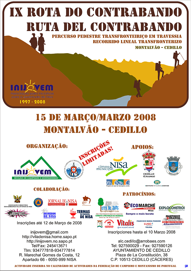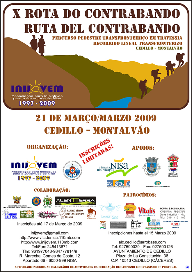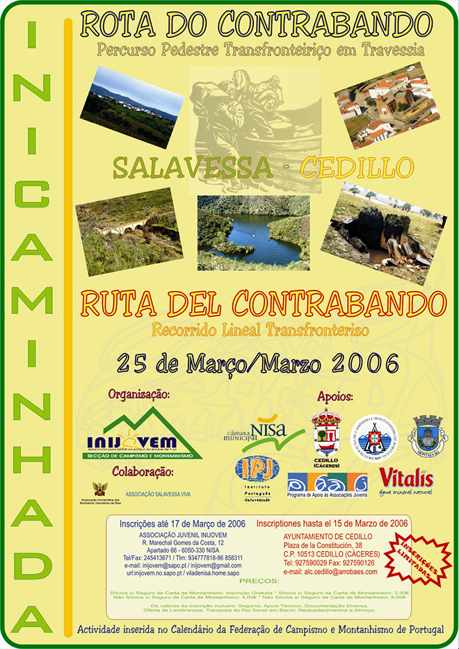 A 21 de Maio de 2000 realizou-se a primeira Rota do Contrabando, entre a Salavessa, aldeia da freguesia de Montalvão, concelho de Nisa e Cedillo, povoação fronteiriça, na vizinha Extremadura espanhola, numa distância de 20 km. Participaram 80 caminheiros, de um e de outro lado da raia! Foi o primeiro evento de caminhada com enquadramento técnico e logístico, organizado no concelho de Nisa, pela INIJOVEM – Associação para Iniciativas para a Juventude de Nisa.